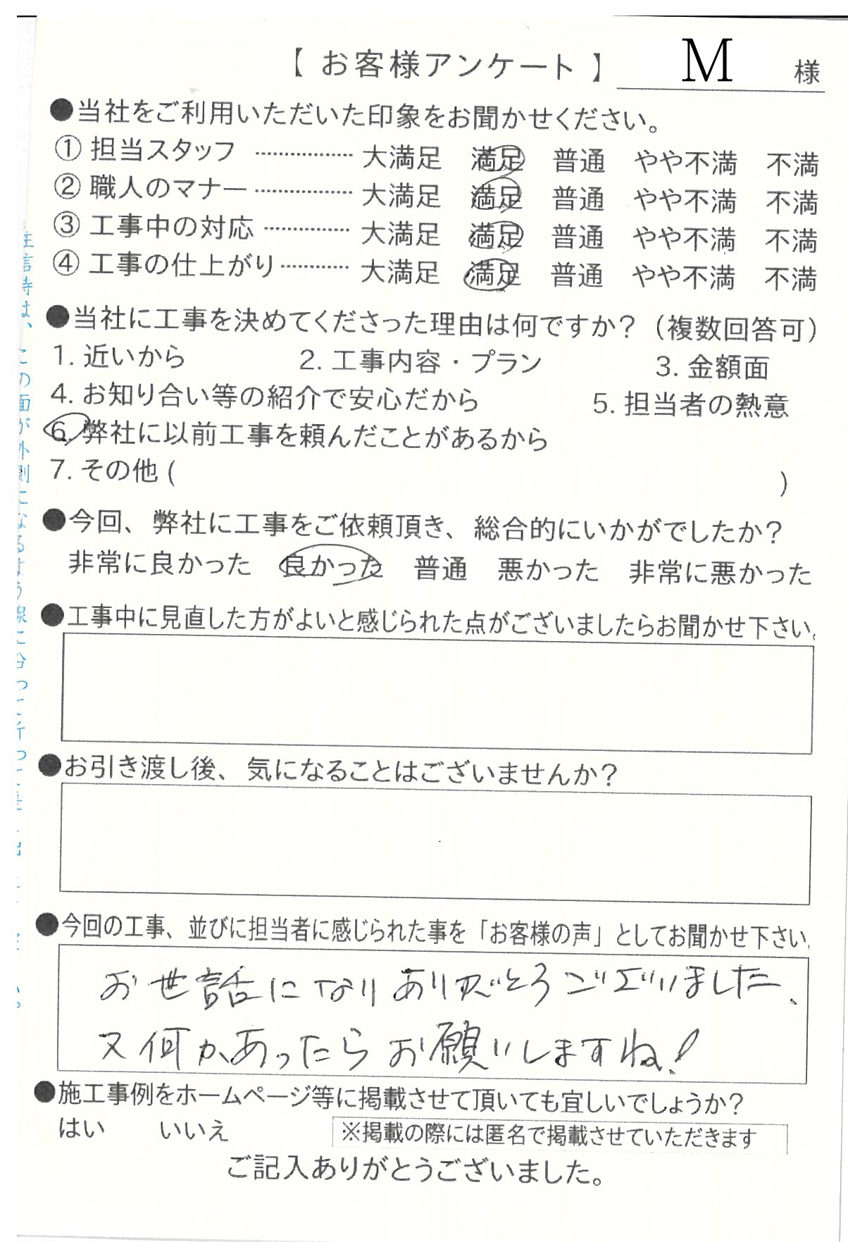 M様より